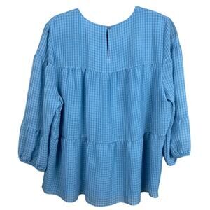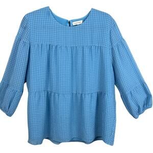 Calvin Klein Tiered Baby Doll Blouse Slate Blue Size XL Boho Relaxed Fall Style