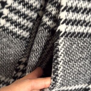 This Calvin Klein pea coat features a striking black and white pattern, offering a timeless and sophisticated look. Crafted from a thick, structured fabric, it provides warmth and style for colder weather. The mid-length design and matching fabric belt enhance its elegant silhouette. Please look at measurements. For an unknown reason this coat does not have the size. I verified the size from the size chart.