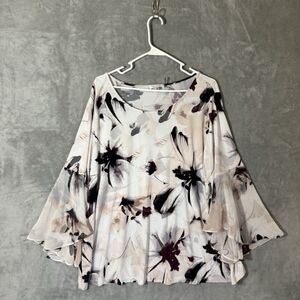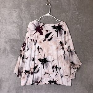Calvin Klein Top 2X Women Plus Floral Slinky 3/4 Bell Sleeve Career Pink Black