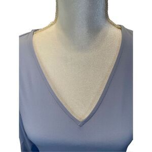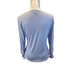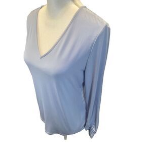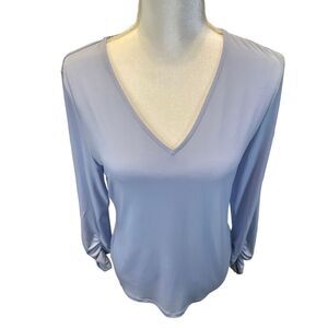 Calvin Klein blouse. Size Medium. Pretty light blue color. Sleeves have ruching at the wrists for an elegant touch. 95% polyester and 5% spandex. Sleeves measure 23” long. Armpit to armpit measures 18”. Top measures 24.5” from top to bottom. New, without tags. Contact me with any questions.