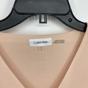 Calvin Klein Top Womens Size Medium Pink Pearl Embellished V Neck Bell Sleeve. Great pre-owned condition.