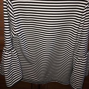 Beautiful WOmens NWT Calvin Klein black/white striped blouse pullover top. Classic neckline. Bell Sleeves. Size large.