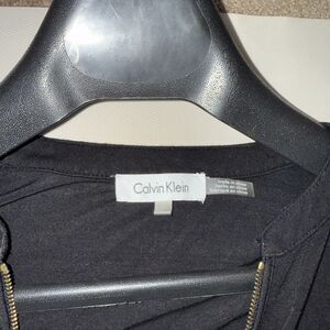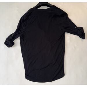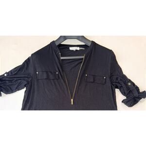 Calvin Klein Top Women's Medium Black Quarter Zip V Neck 3/4 Sleeve Casual