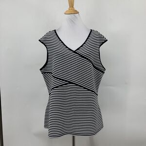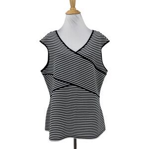 Calvin Klein Top Womens XL Extra Large Black White Striped Sleeveless Side Zip