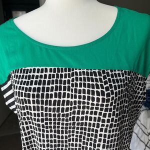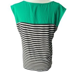 Calvin Klein Top Womens sz L Large Color block striped mosaic cap sleeves office
