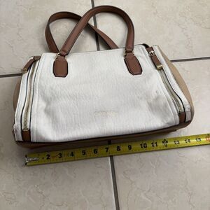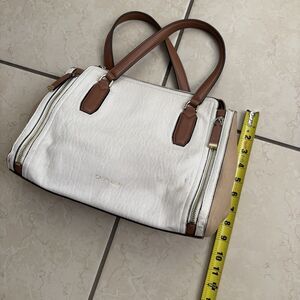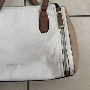 Calvin Klein Tote Bag White Tan Faux Leather Shoulder Purse Gold Hardware Zipper