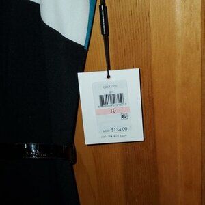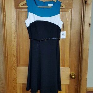 Calvin Klein Tri-Colored Sleeveless Zippered Lined Belted Sz 10 Dress