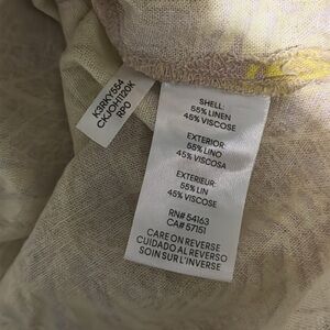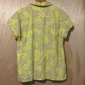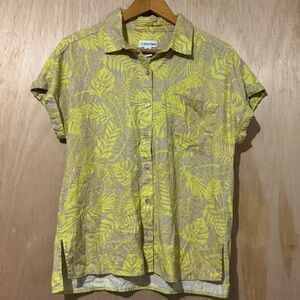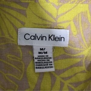 Calvin Klein Tropical Print Linen Blend Short Sleeve Button Down Shirt in Pear M