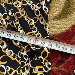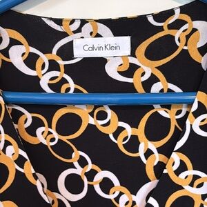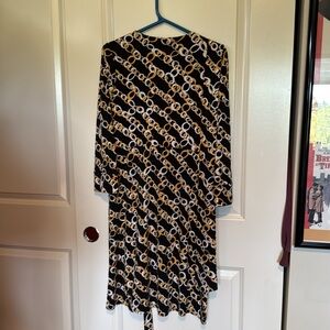 Calvin Klein Women Wrap Dress Sz 8P Black Gold Chain Print Long Sleeve size tag, however, fits a medium no holes no rips from non-smoking home please see measurements