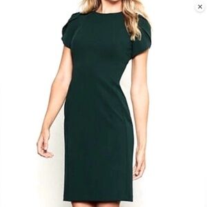 Calvin Klein Tulip Sheath Dress pine green with Gold Back Zipper.