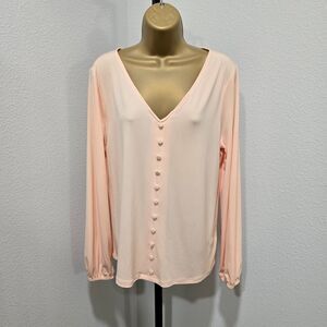 Calvin Klein Tunic Womens Large Modest Peach Pastel Button Stretch Office Career