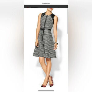 Calvin Klein Tweed and Faux Leather Fit and Flare Dress