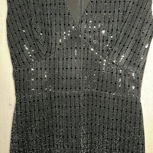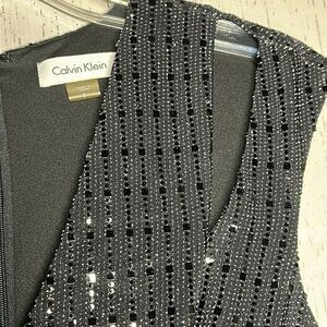 Calvin Klein V Neck Black Bedazzled Sparkle Shoulder Cut Out Sleeveless Dress 2