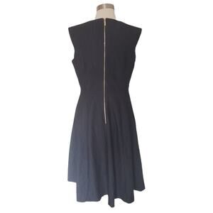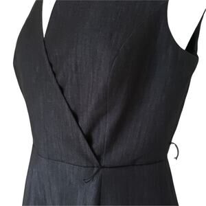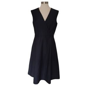 Calvin Klein V Neck Dark Denim Wrap Midi Dress Size 10 Fit & Flare Gold Zipper