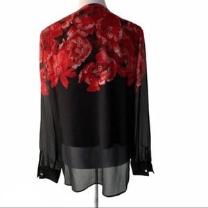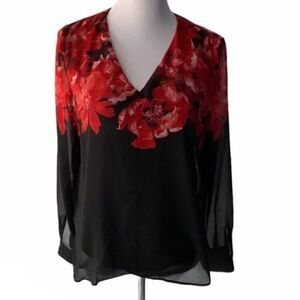 Calvin Klein V Neck Red Floral Blouse size S