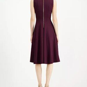 Thick and perfect for fall and winter! Flattering fit and flare silhouette with a v-neck. Modest and great for cocktail-attire events. Purchased at Von Maur in fall 2021 and worn once for a wedding (October '21). Beautiful aubergine/plum shade, zip up back, fitted in the bust with a flared A-line skirt. True-to-size 10, hits the knee.