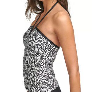 Your poolside style is updated with this printed Calvin Klein tankini top designed with chic neckline and halter straps.