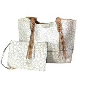 Calvin Klein Vanilla Coated Canvas Monogram Tote Bag and Accessory Case