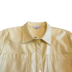Calvin Klein Vegan Faux Leather Butter Yellow Snap Down Jacket Shacket Large