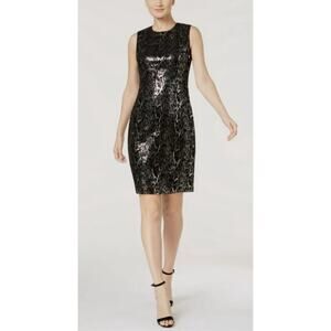 Calvin Klein Velvet Sequin Snake Print Sheath Cocktail Dress 2 NWT $159