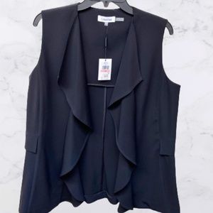 Calvin Klein Black Vest Open Ruffle Front, Faux Pockets, Size Large, NWT Cute paired with jeans!