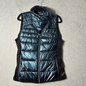 Calvin Klein Vest Womens L Blue Metallic Funnel Neck Puffer Repellent Full Zip