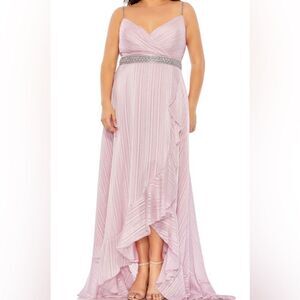 Chic red blouse with cascading ruffles. Perfect for a bold statement.