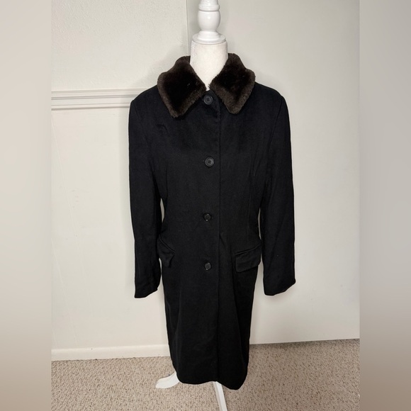 Calvin Klein Vintage Black Wool Coat with Faux Fur Collar size 14