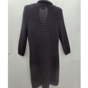 Calvin Klein Vintage Black Wavy Stripe Knit Side Buckle Shawl Collar Long Sleeve Midi Bodycon Dress