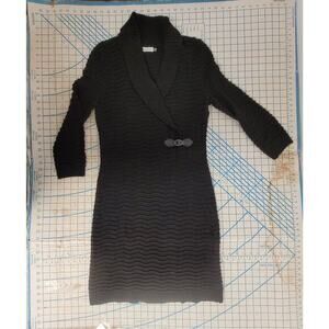 Calvin Klein Vintage Knit Side Buckle Shawl Collar Long Sleeve Bodycon Dress