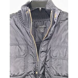 The Calvin Klein Vintage Performance Long Sleeve/Turtleneck Vest in Men's Size M is a stylish and versatile outerwear piece. Made of durable nylon with a cozy 100% cotton lining, this vest features a full zipper for easy wear. The silver color and metal theme add a touch of sophistication, while the long sleeves and turtleneck design provide added warmth. Perfect for both men and women, this vest is a timeless addition to any wardrobe, suitable for various occasions and seasons.