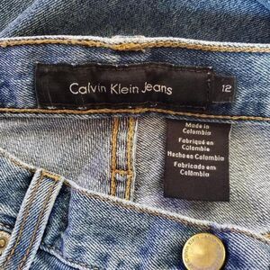 Perfect condition straight leg CK light wash ankle length cotton jeans . | 17" W | 10" inseam | 22" hips | Labeled size 12 . ♡♡ basics retro 90s 1990s grunge minimalist clean girl boyfriend fit tomboy skater bill blass