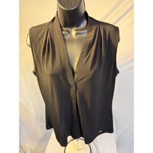 Calvin Klein Vneck Sleeveless Shirt Blouse Wear Under Jacket Womens Large Black