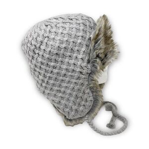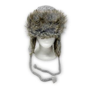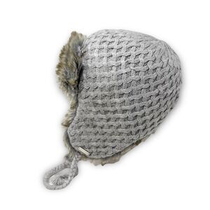 Calvin Klein Waffle Knit Trapper Hat Cap Winter Tassels Faux Fur Gray OSFM