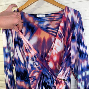 Calvin Klein Watercolor Tie Dye Faux Wrap Stretch Dress, Women’s Size Large