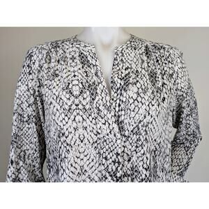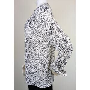 Calvin Klein White Black Snakeskin Print Flowy Career Blouse High Low Large