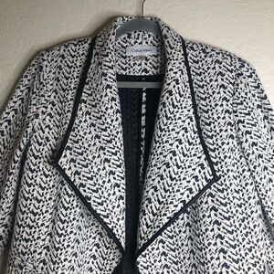 Calvin Klein White & Black Woven Open Front Jacket Career, Normcore, Academia