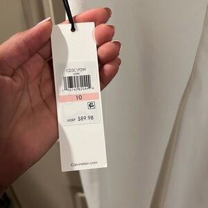 Chic long sleeve dress by Calvin Klein. Features a flowing design with elegant sleeves. Perfect for formal events. NEVER WORN