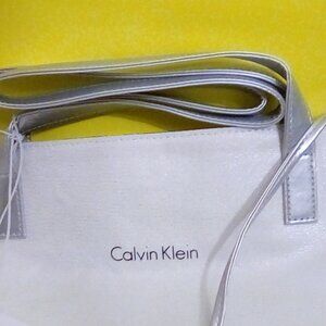 Calvin Klein White & Silver tote purse bag NWT