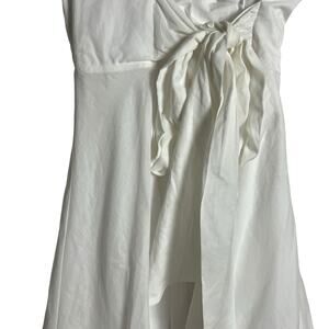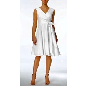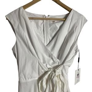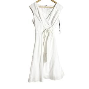 Calvin Klein White Sleeveless V-Neck Tie Waist A-Line Midi Dress Size 6