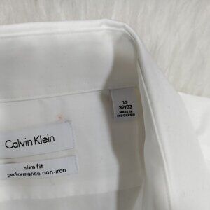 Calvin Klein White Slim Fit Performance Non-Iron Dress Shirt Men's Size 15, GREAT condition some slight discoloration under the arms of 1 shirt barely noticeable.