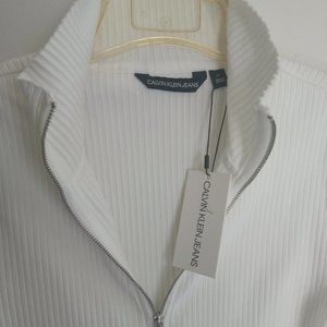Sports performance cotton zipper short-sleeve top from Calvin Klein.
