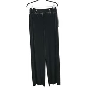 Calvin Klein Whitney Velour Velvet Black Wide Leg High Rise Trouser Pants Size 2 NWT