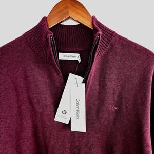 Calvin Klein Wine Burgundy Quarter Zip Pullover Sweater Men's Size Small