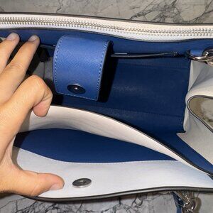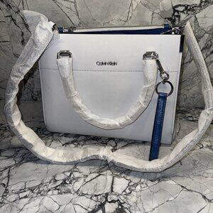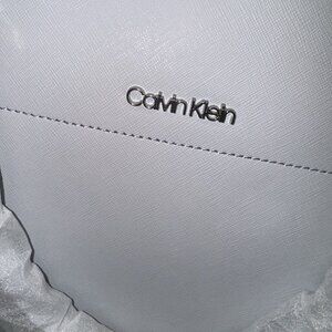 Calvin Klein Woman Genuine Leather Crossbody Bag Gray Blue Shoulder Straps Logo