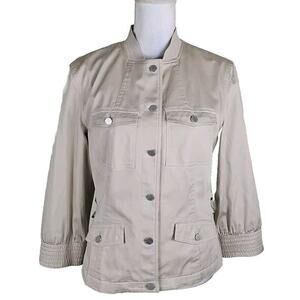 Calvin Klein ~Woman Size 12~ Beige Khaki Lightweight Buttons Front Jacket Lined