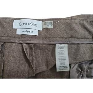 Elevate your wardrobe with these Calvin Klein dress pants, perfect for any formal or workwear occasion. The light brown polyester blend fabric features a wide-leg design with a modern fit and mid-rise for maximum comfort. The pants come equipped with both a zip and button closure, as well as pockets for added convenience.