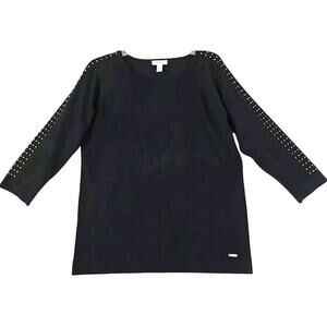 Calvin Klein ~Woman Size L~ Black 3/4 Sleeve Sweater Crew Neck Top Pullover.
