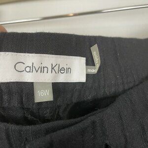 Calvin Klein Woman’s Black Linen Blend Wide Leg Pants Elastic Waist Size 16W