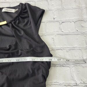 Gently used Calvin Klein Woman’s Black Sheath midi dress size 4 sleeveless key hole